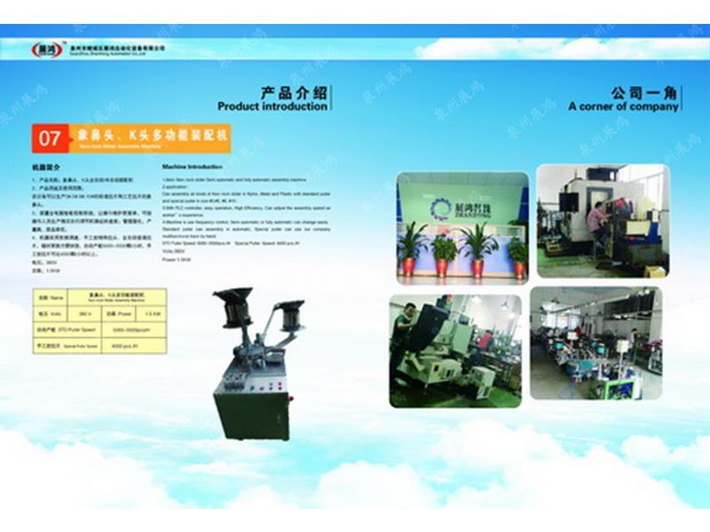 ??泉州市展鴻自動化科技有限公司始創(chuàng)于2003年,是一個集研發(fā)、制造、銷售為一體的現代化公司,專業(yè)從事研發(fā)、生產各類型號的全自動拉鏈頭裝配機。泉州市展鴻自動化科技有限公司始創(chuàng)于2003年,是一家集研發(fā)、生產、銷售、服務于一體的現代化拉鏈頭設備智能制造生產企業(yè):專業(yè)從事研發(fā)、生產各類型號的全自動拉鏈頭智能裝配機。亦可根據不同客戶的需求,提供適合客戶自身需要的“私人定制”式專用拉鏈頭設備及自動檢測拉頭品質一體機。泉州市展鴻自動化科技有限公司始創(chuàng)于2003年,是一家集研發(fā)、生產、銷售、服務于一體的現代化拉鏈頭設備智能制造生產企業(yè):專業(yè)從事研發(fā)、生產各類型號的全自動拉鏈頭智能裝配機。亦可根據不同客戶的需求,提供適合客戶自身需要的“私人定制”式專用拉鏈頭設備及自動檢測拉頭品質一體機。